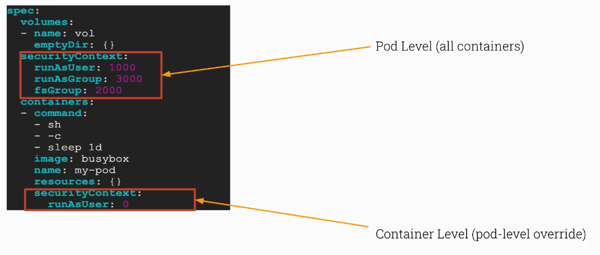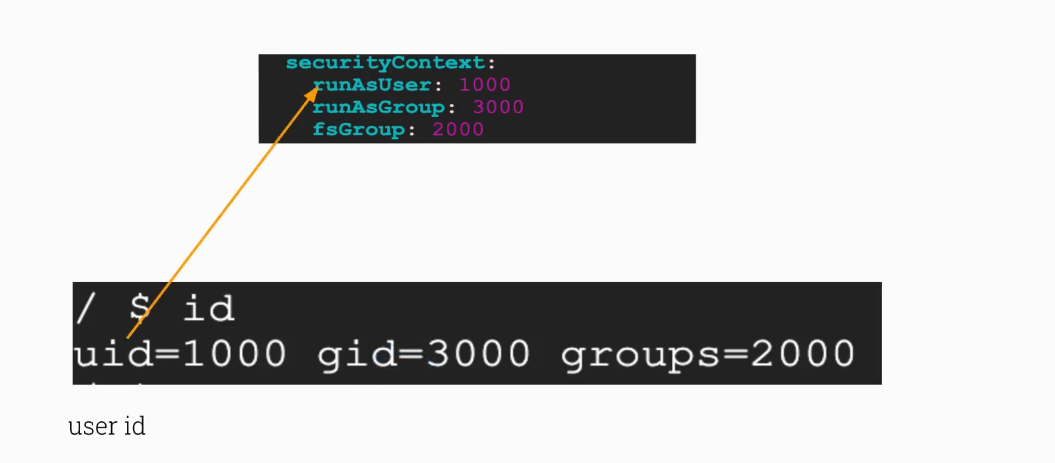 Hmm and YOU will see that it actually runs! Why??? Because we have specified a securityContext at the pod level with values 1000 for user and 3000 for a group previously!